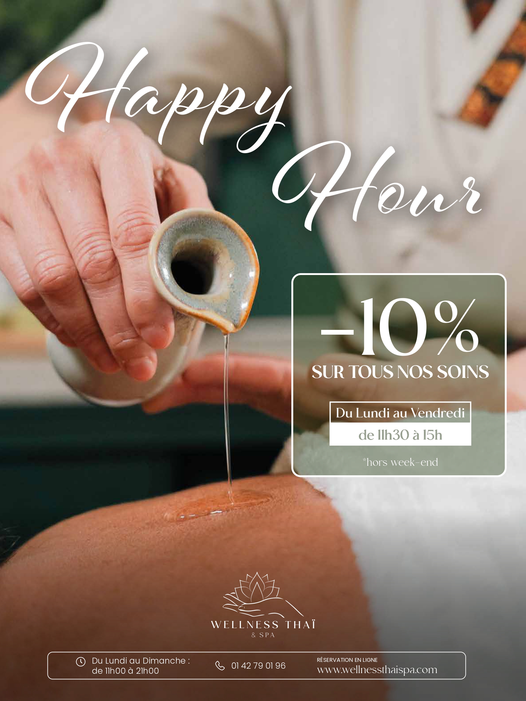 Wellness Thaï & Spa s’engage à faire vivre une expérience qui réveille les sens. La douceur des mains expertes de nos équipes, le parfum subtil des huiles, la quiétude des lieux… tout a été conçu pour vous offrir une immersion totale dans l’art de vivre thaïlandais. Inspirées par les traditions millénaires de Thaïlande, nos pratiques honorent l’équilibre et l’harmonie naturelle, pour vous permettre de vous reconnecter avec vous-même, dans un environnement raffiné.